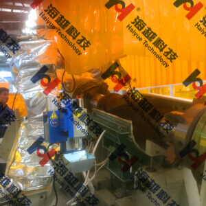 用于客戶現(xiàn)場的軸類表面堆焊保溫。軸表面進(jìn)行加熱保溫,焊接部位的溫度在250℃左右。筒體材質(zhì):ZG300-600。采用圓弧感應(yīng)器從軸底部進(jìn)行加熱維溫。